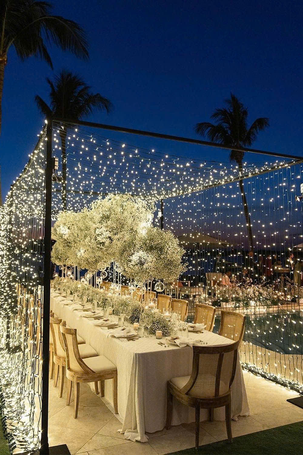 Hệ không gian cưới ngoài trời bằng dây Led vàng cực ấm áp và lung linh