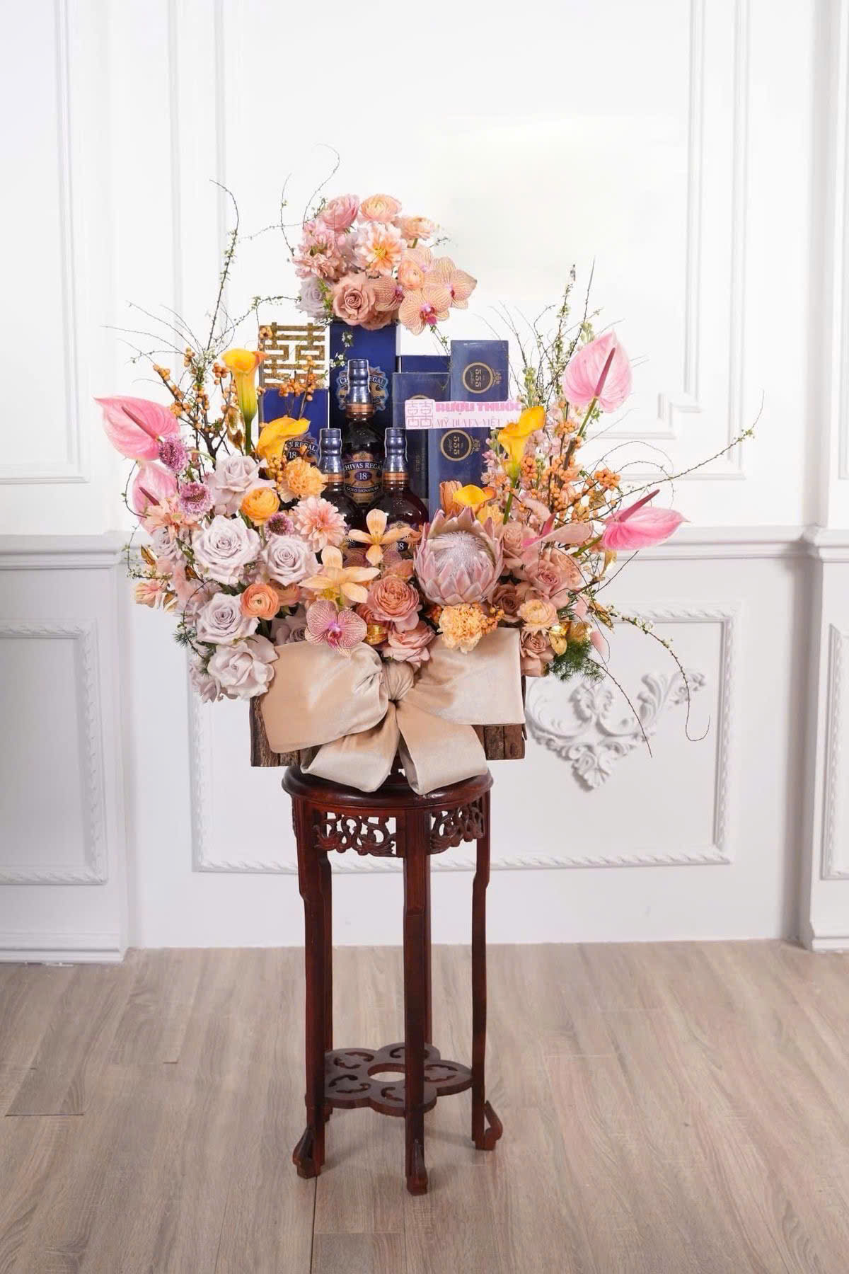 Mâm quả Cưới tông đỏ hồng nổi bật