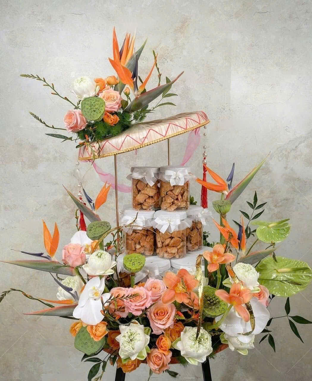 Mâm quả Cưới Quan họ tông tropical độc lạ