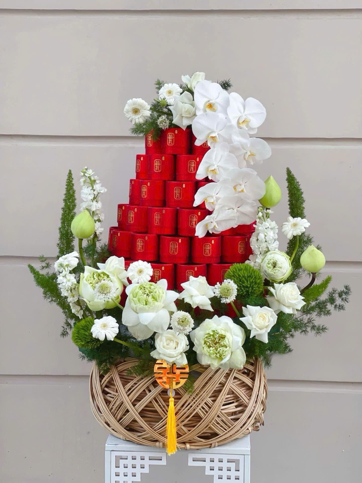 Mâm quả Cưới Quan họ tông tropical độc lạ