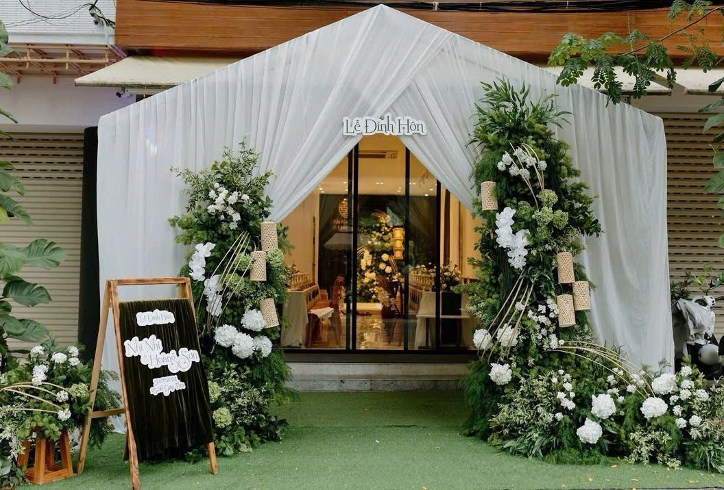 Rạp cưới Tông trắng phối Xanh lá sang trọng
